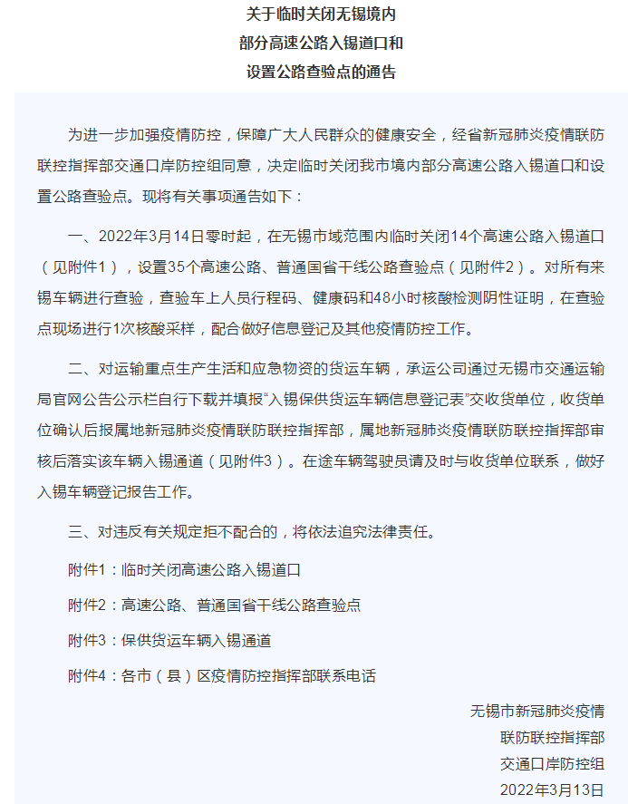 根據(jù)新冠疫情防控需要,結(jié)合高速公路通行實際情況,經(jīng)研究決定: 自2022年3月12日0時起,對南通市境內(nèi)部分高速公路收費站出入口實行臨時封閉。請廣大駕乘人員提前做好出行規(guī)劃,合理安排出行線路,服從現(xiàn)場指揮,實現(xiàn)有序通行。