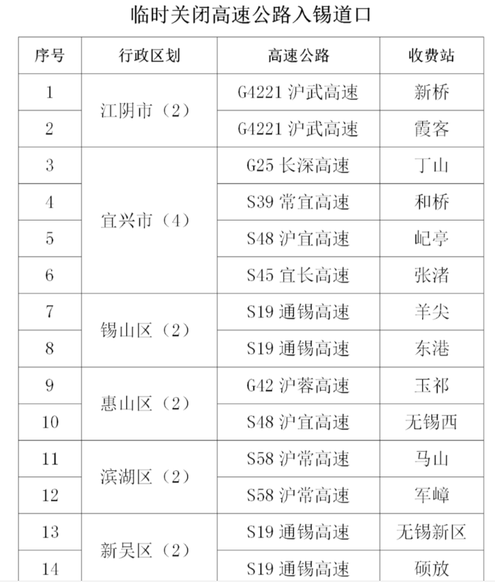 蘇錫常南部高速(S58):臨時關(guān)閉運村入常道口,其他正常開放。