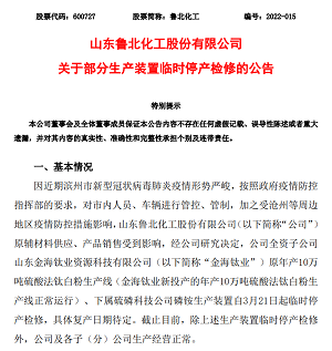 繼魯西化工發(fā)出停產(chǎn)公告以后,沈陽(yáng)化工也發(fā)出停產(chǎn)公告。