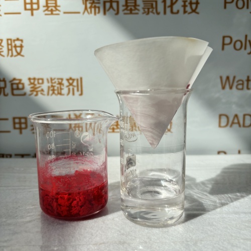 通過添加脫色劑,礬花聚集且水質(zhì)明顯清澈,過濾后沒有絲毫雜質(zhì),客戶很滿意。